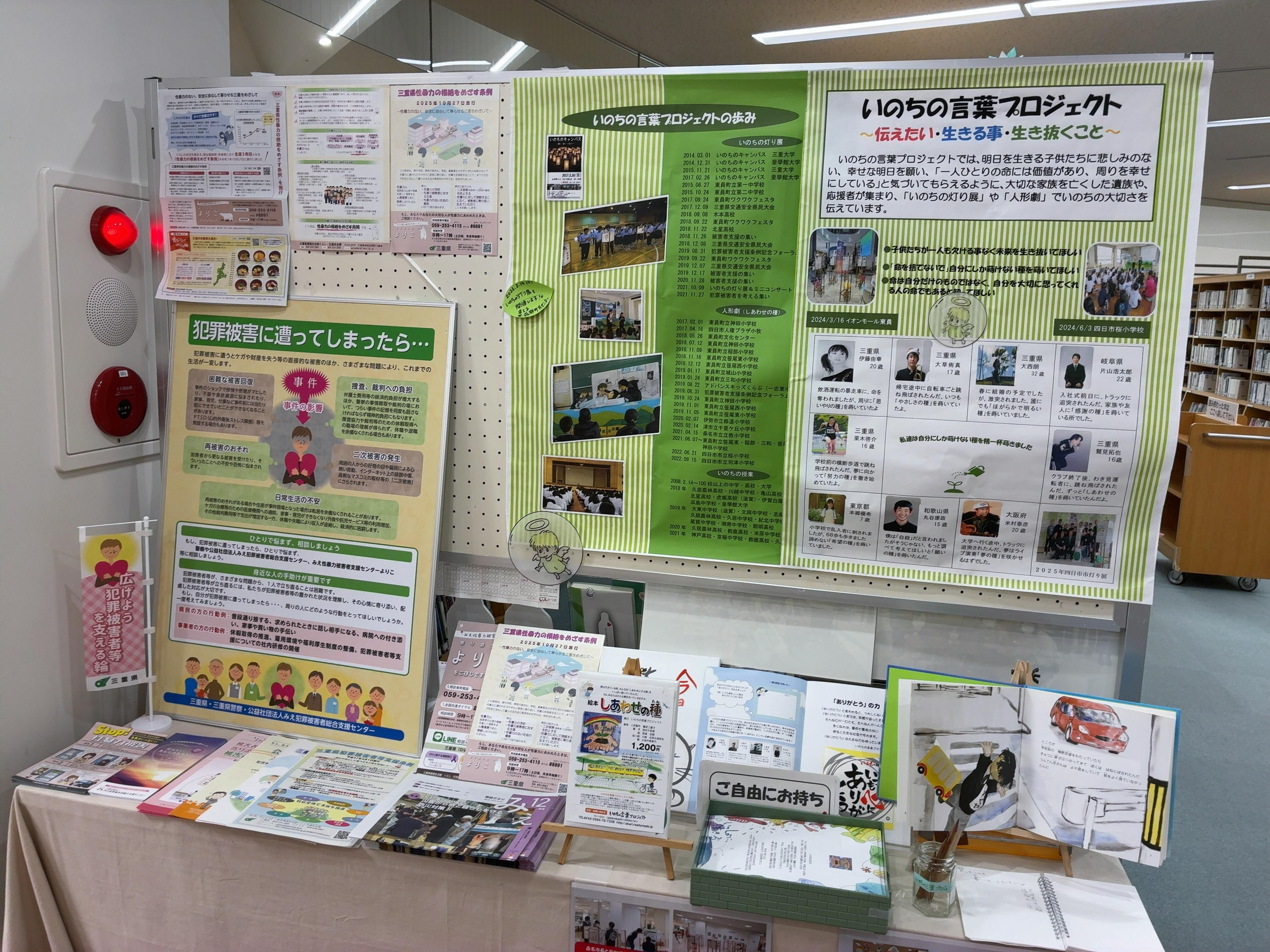 三重県立図書館では、三重県環境生活部くらし・交通安全課と連携し、「犯罪被害/交通遺児」に関する展示を行っています。